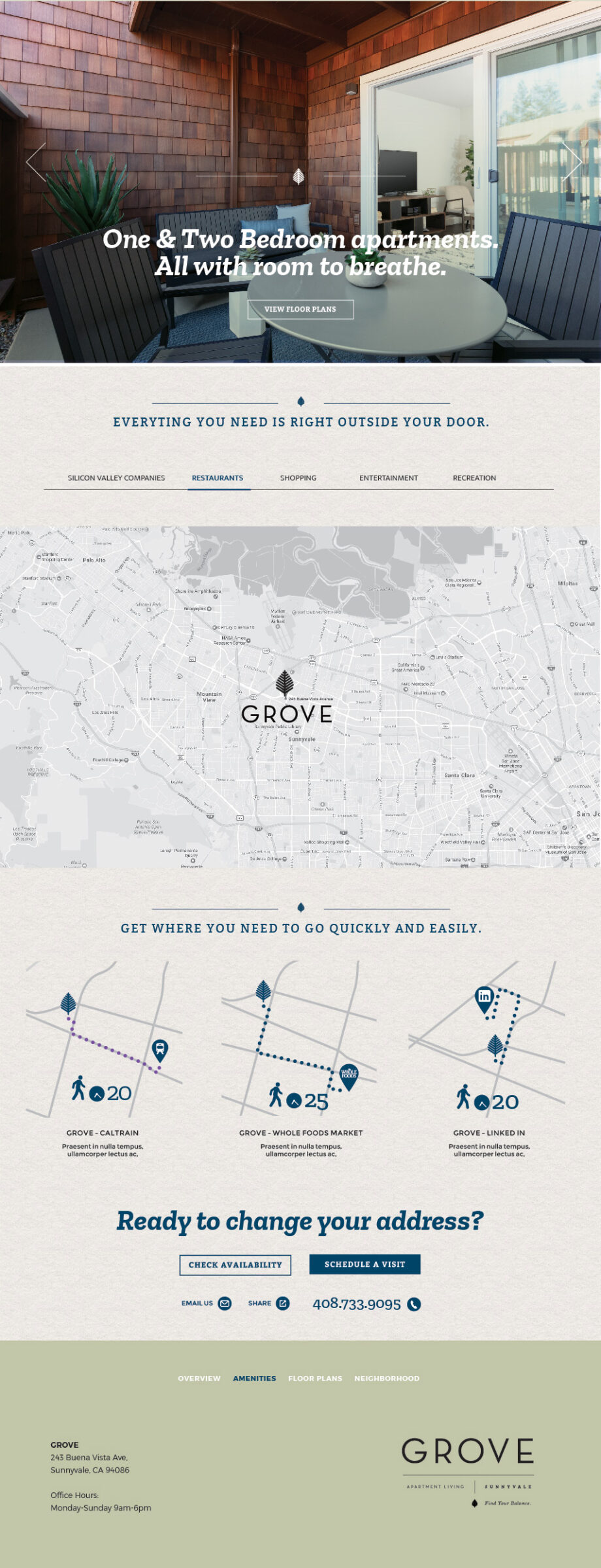 With a footprint anchored in the citrus grove trees of yesteryear, Grove has been re-imagined as the ideal apartment complex in Silicon Valley to get away from it all.