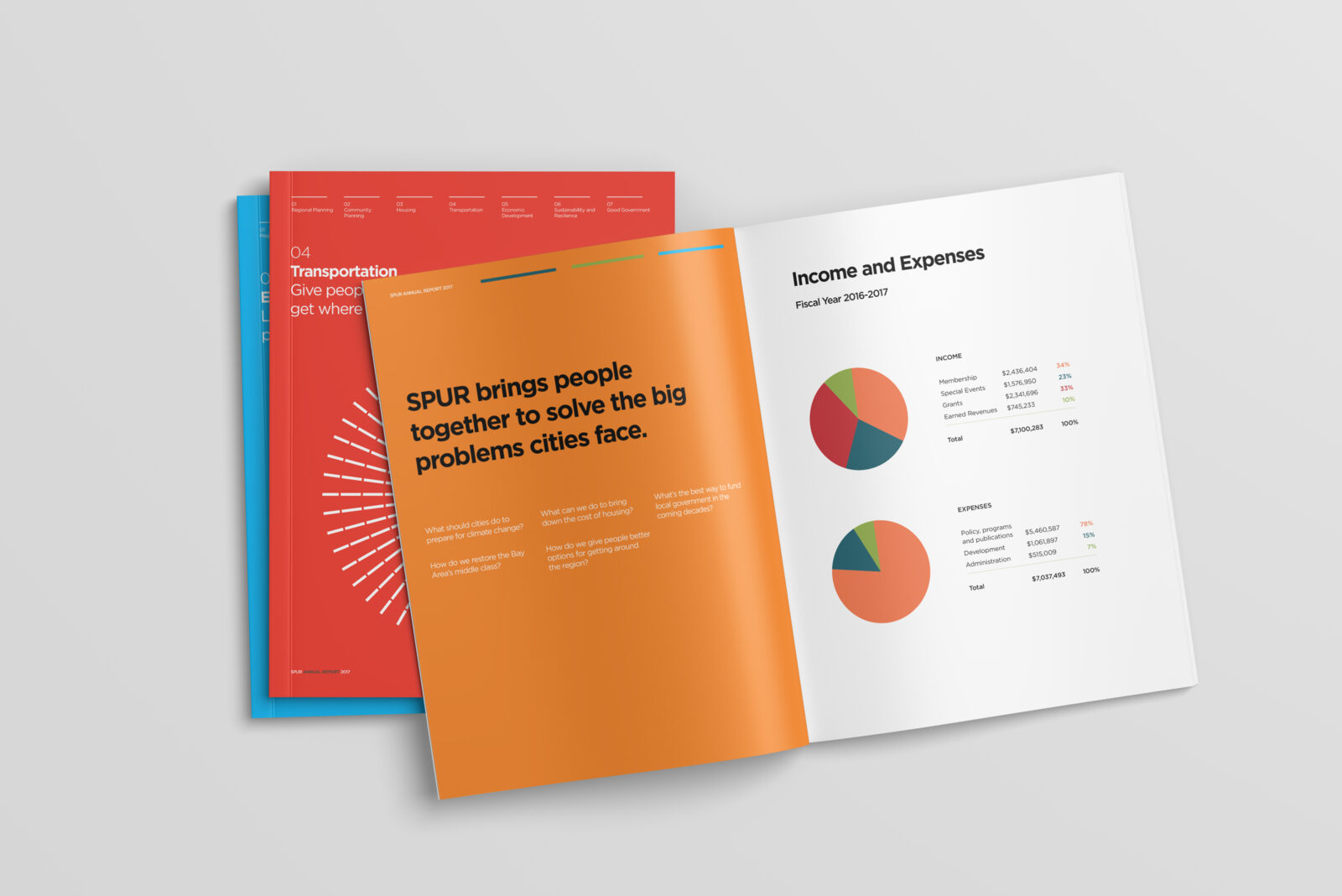 Annual report for SPUR, the nonprofit public policy organization based in the San Francisco Bay Area, SPUR works to create an equitable, sustainable and prosperous region.