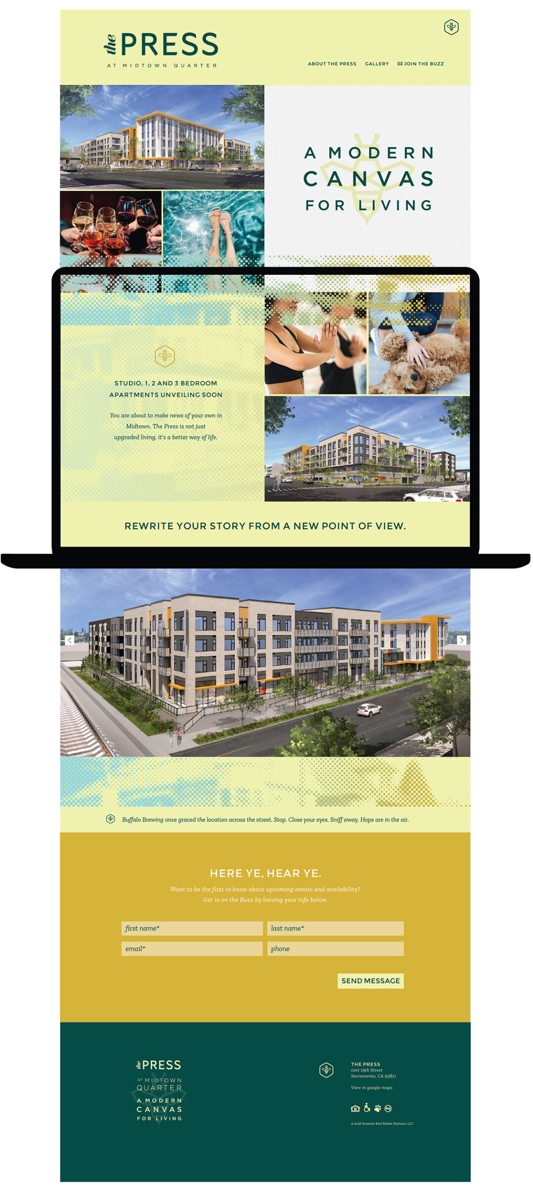 With foundations on the former Sacramento Bee newspaper grounds, The Press at Midtown is everything you want it to be. This centrally-located, technology-laden and design-inspired apartment complex is more than just an apartment building, it’s a Modern Canvas for Living.